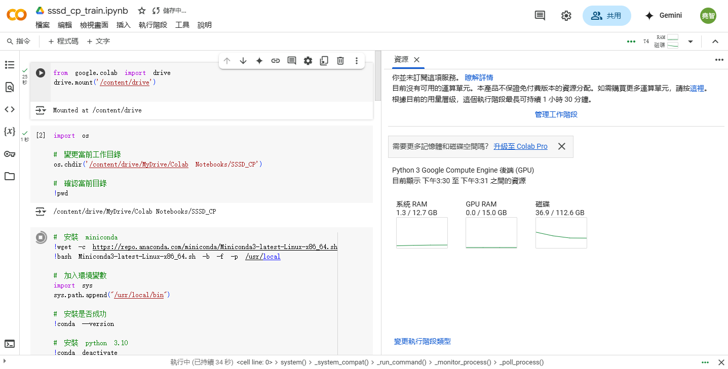 接下來於目錄 /content/drive/MyDrive/Colab Notebooks/SSSD_CP 執行以下指令即可。