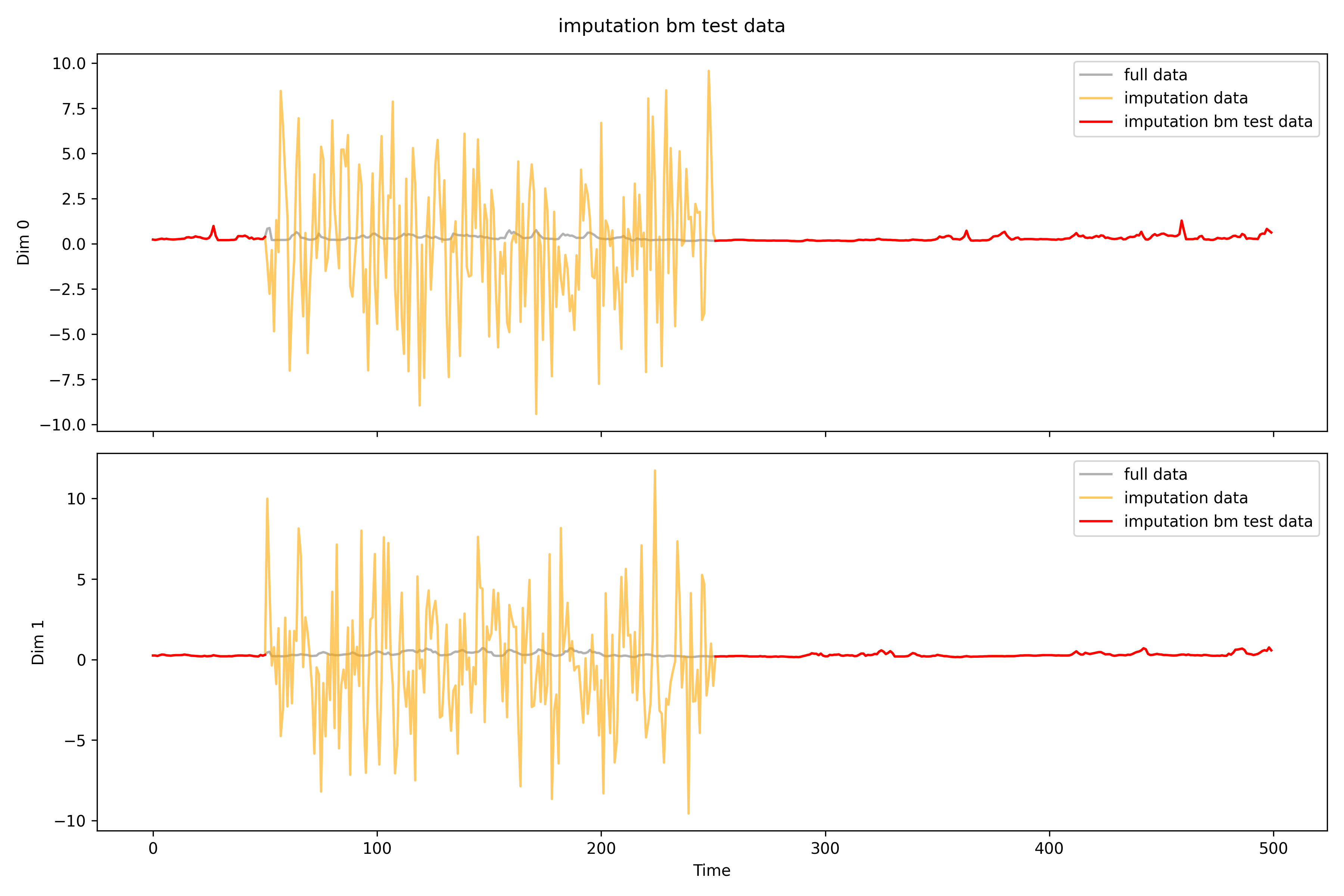 """show_dims=2fig,axes=plt.subplots(show_dims,1,figsize=(12,8),sharex=True)#imputation_data = np.where(np.isnan(missing_data), imputation_data, np.nan)forjinrange(show_dims):axes[j].plot(full_data[0,j],color='gray',label='full data',alpha=0.6)axes[j].plot(imputation_data[0,j],color='orange',label='imputation data',alpha=0.6)axes[j].plot(missing_data[0,j],color='red',label=title)axes[j].set_ylabel(f'Dim {j}')axes[j].legend()plt.suptitle(title)plt.xlabel('Time')plt.tight_layout()plt.savefig(f"{save_path}.png",dpi=300)#plt.show()defimputation_plot_each_dim(full_data,missing_data,imputation_data,title,save_dir):"""