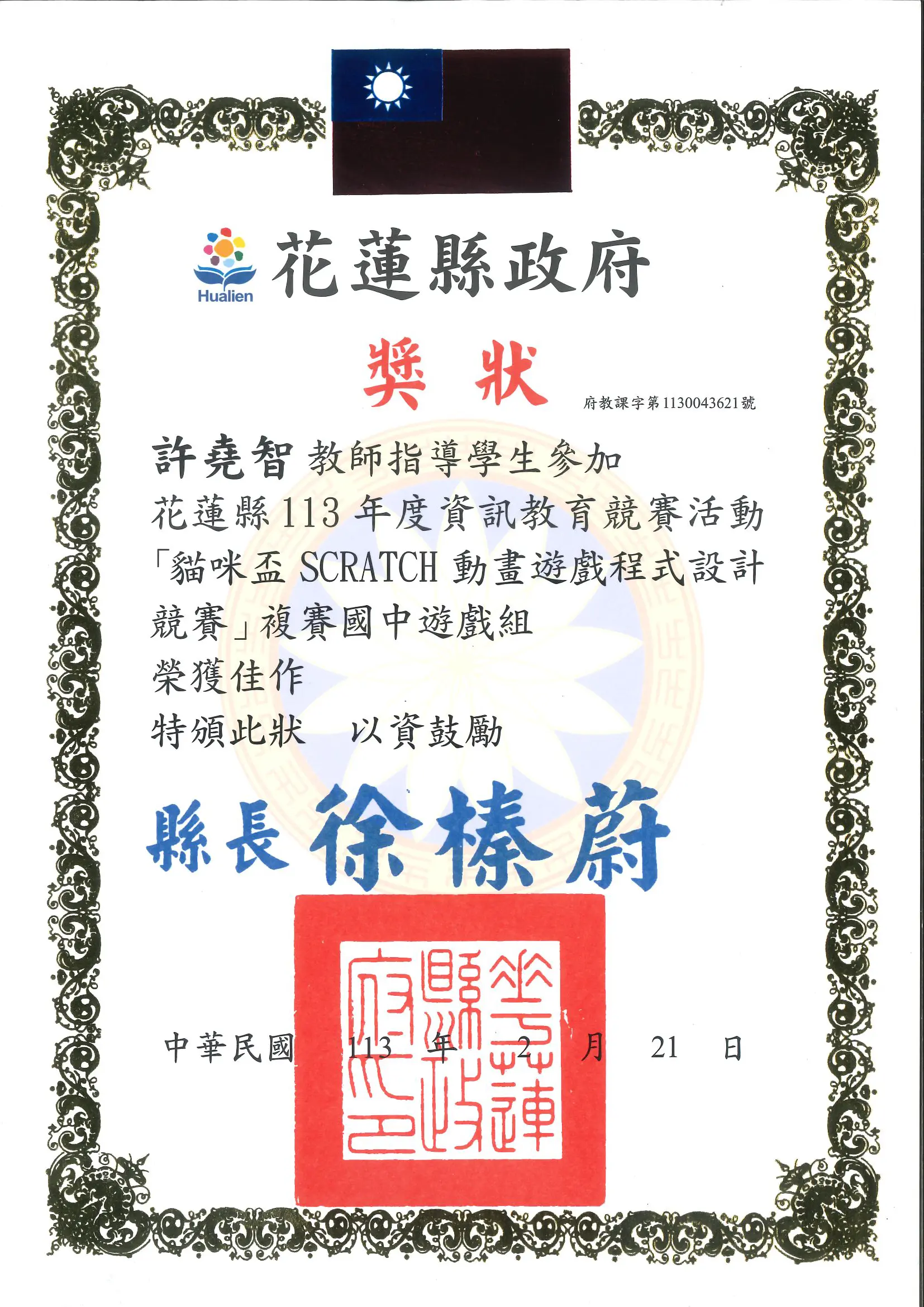 程式設計納入十二年國民基本教育,是未來人才必備的重要能力。透過撰寫程式,學生不僅能鍛鍊系統思考、邏輯推理與問題解決的能力,也能在創作過程中培養美感、資訊素養以及創新應變的能力。花蓮縣資訊教育競賽正是基於此目標,激發學生的運算思維與解決問題的潛能,要求學生運用直覺式 Scratch 程式語言設計動畫與遊戲。