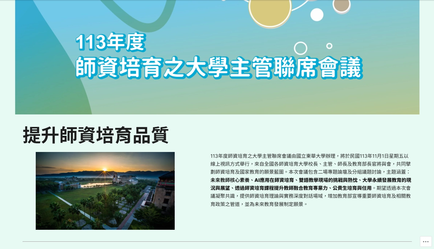 封面圖片為 113 年度師資培育之大學主管聯席會議,攝於 2024 年 11 月 1 日。
