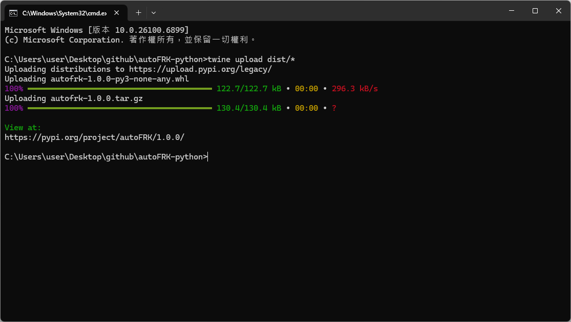 creating 'C:\Users\user\Desktop\github\autoFRK-python\autoFRK\dist\.tmp-mxuu22cz\autofrk-0.1.0-py3-none-any.whl' and adding 'build\bdist.win-amd64\wheel' to it
